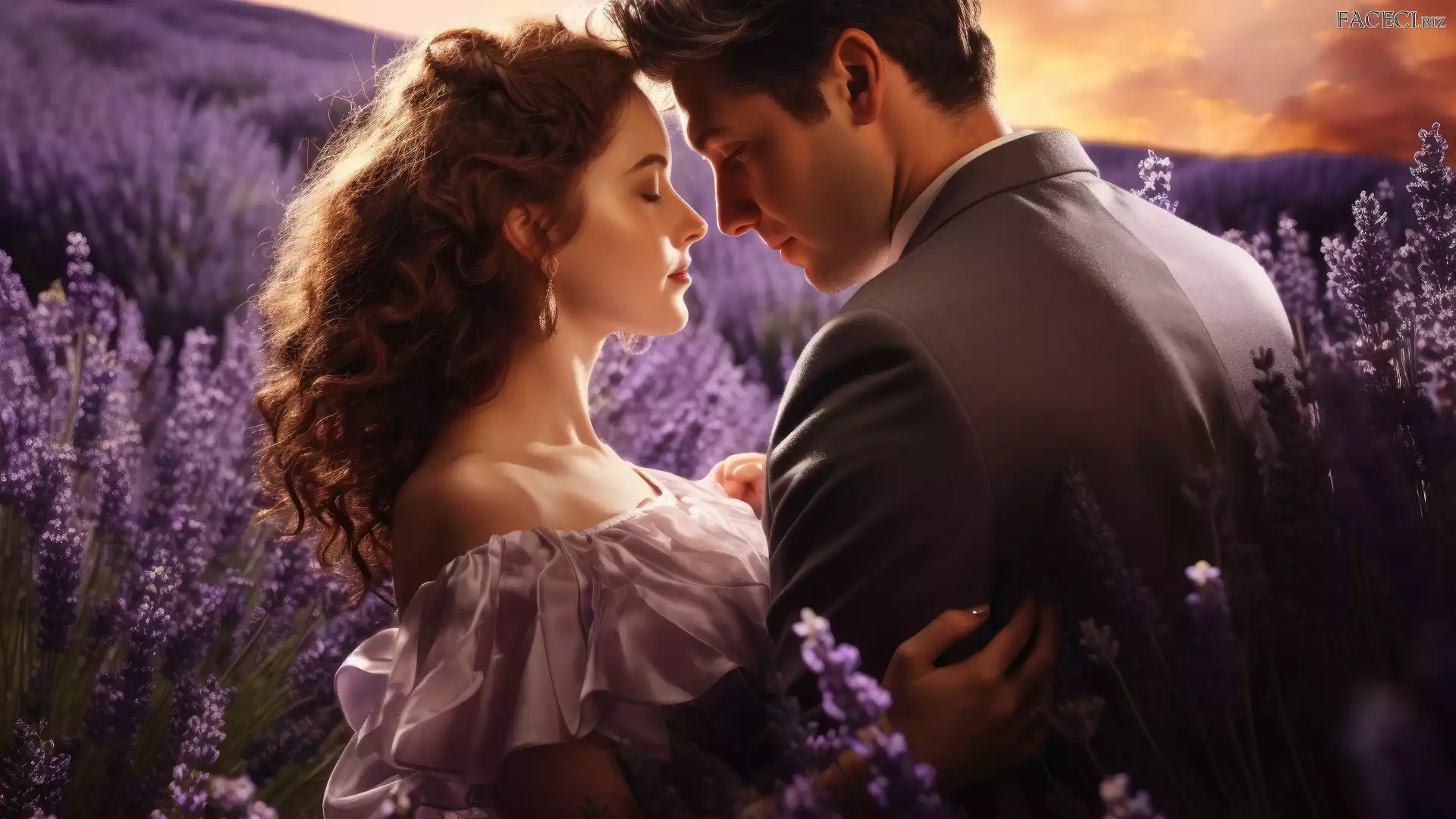 Zakochani, Ludzie, Kobieta, Miłość, Lawenda, Mężczyzna, Pole - faceci.biz